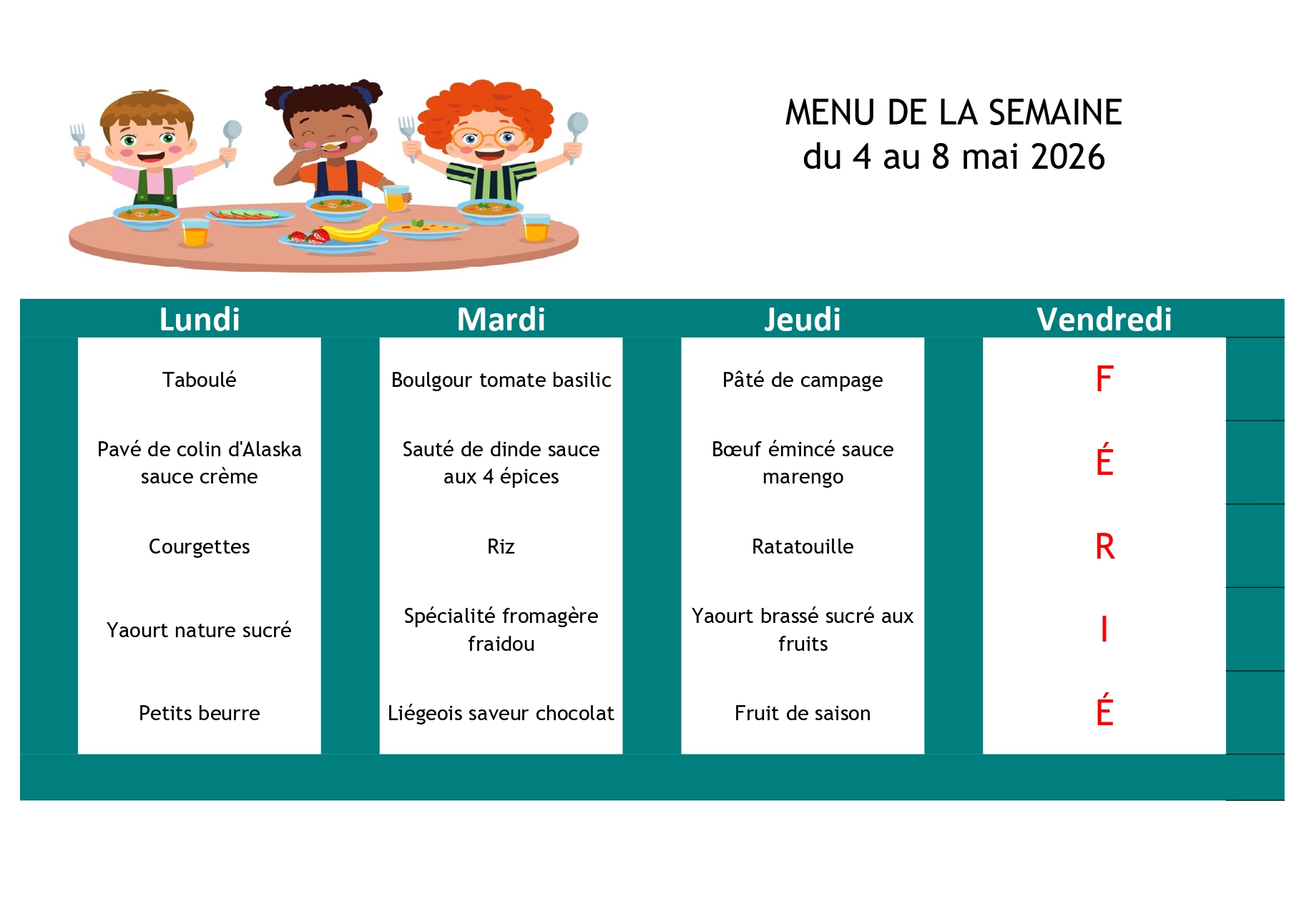 Le coût du repas est fixé à 4,00€ depuis le 01/03/2025.