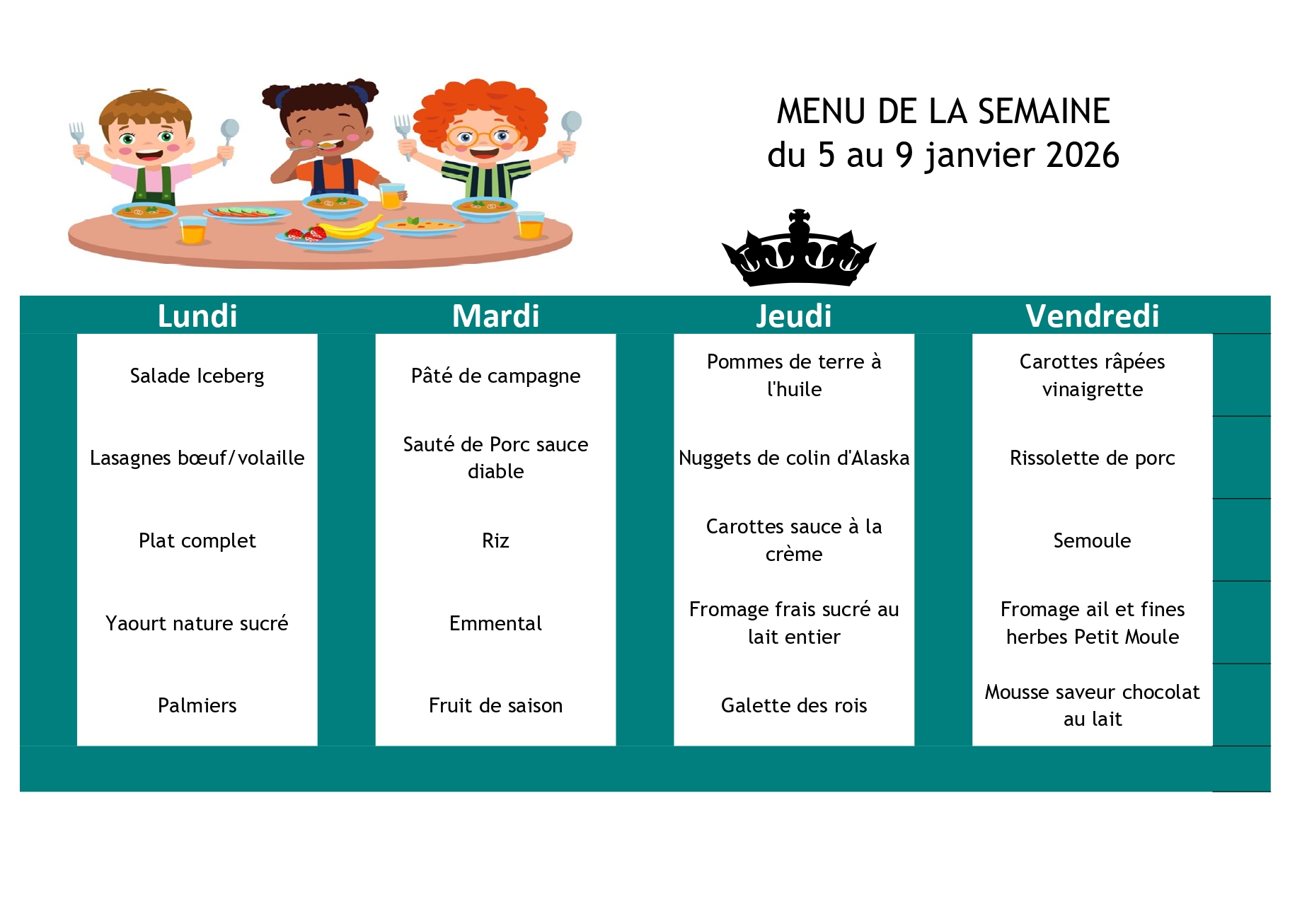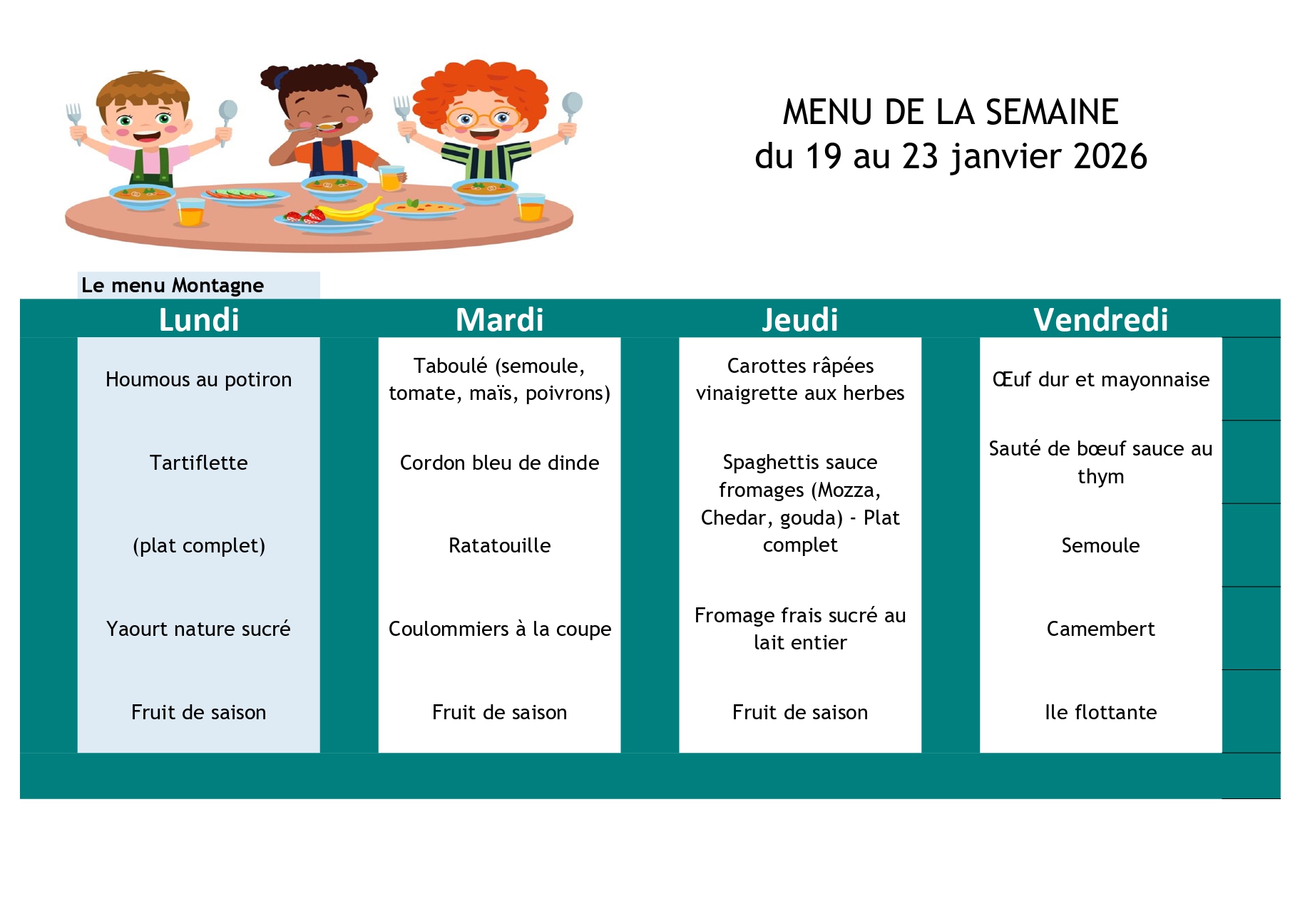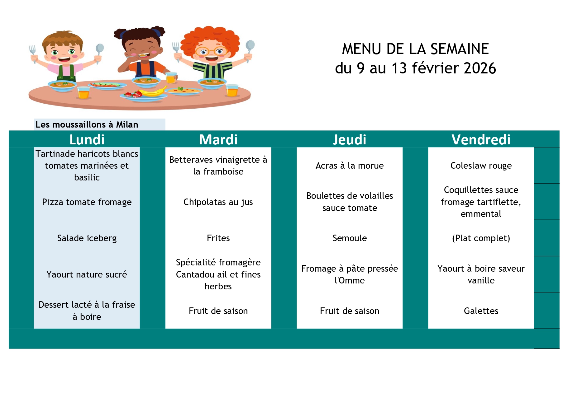 Ci-après les menus de la cantine scolaire pour la rentrée du 01/09/2025. Depuis la rentrée 2024, les repas sont assurés par la société " La Normande", les menus sont choisis par un membre du service cantine scolaire, du Maire, de l’adjointe au Maire chargée aux affaires scolaires ainsi que des parents d’élèves.